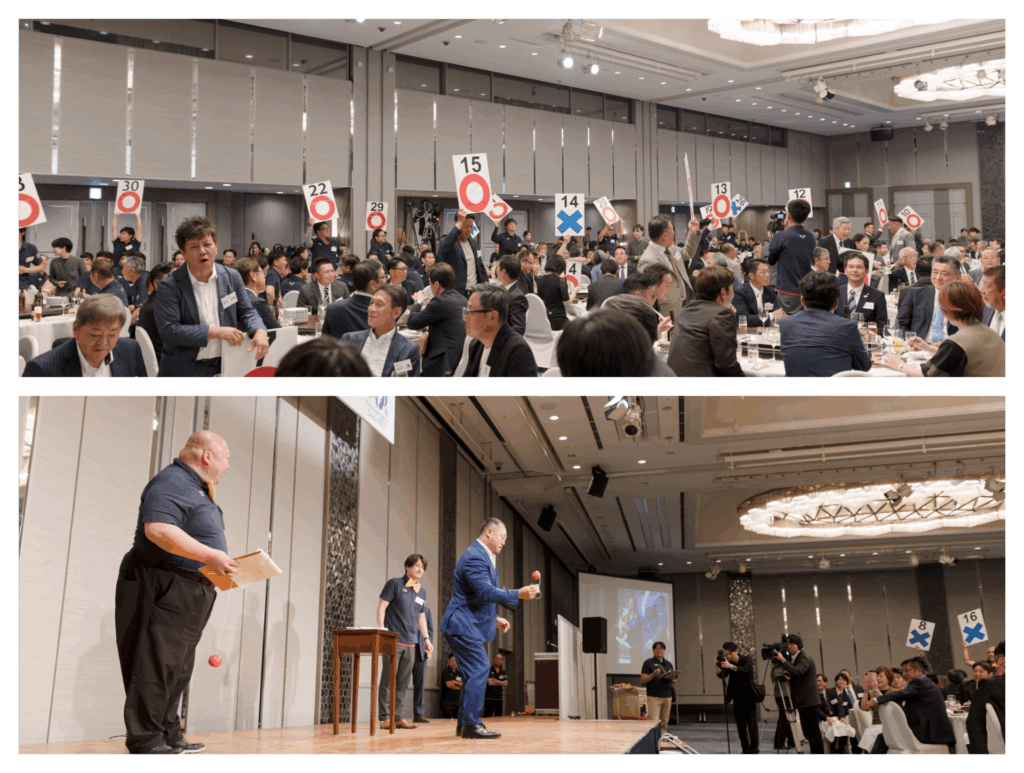 けん玉チャレンジや投球チャレンジなどは、お酒が入っているせい?でなんとも面白い結果になり、大爆笑となりました。